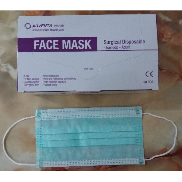 Adventa 3ply Adult Face Mask Green Colour 50 Pcs Box Shopee Malaysia